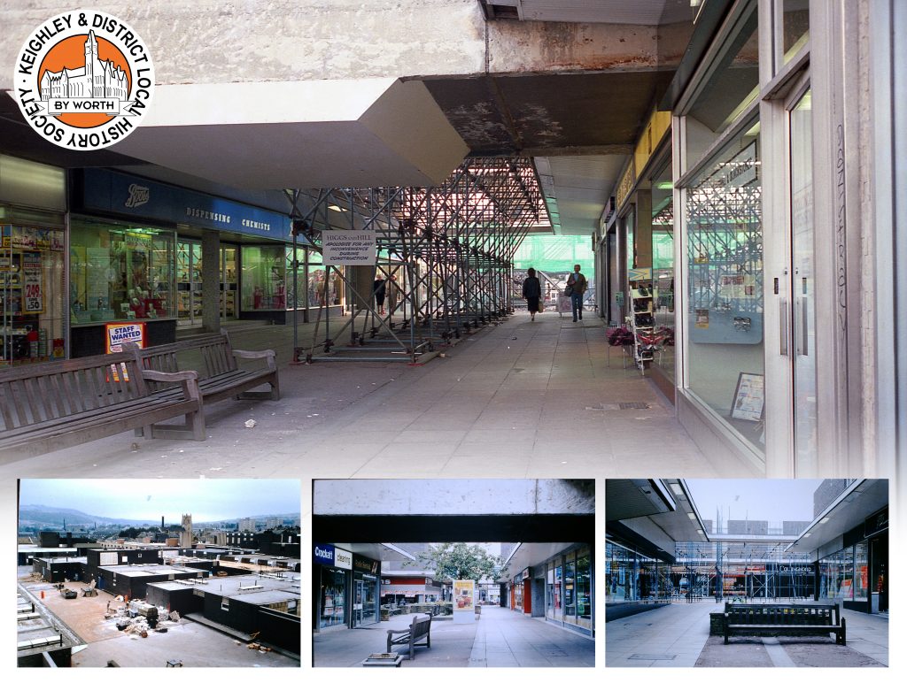 These photographs of the redevelopment of the Airedale Shopping Centre were all taken on 21st September 1986 by Roy Willoughby. Up until this point, the 1960s shopping precinct had been open to the elements, but at this time work was underway to build a roof over all the walkways.