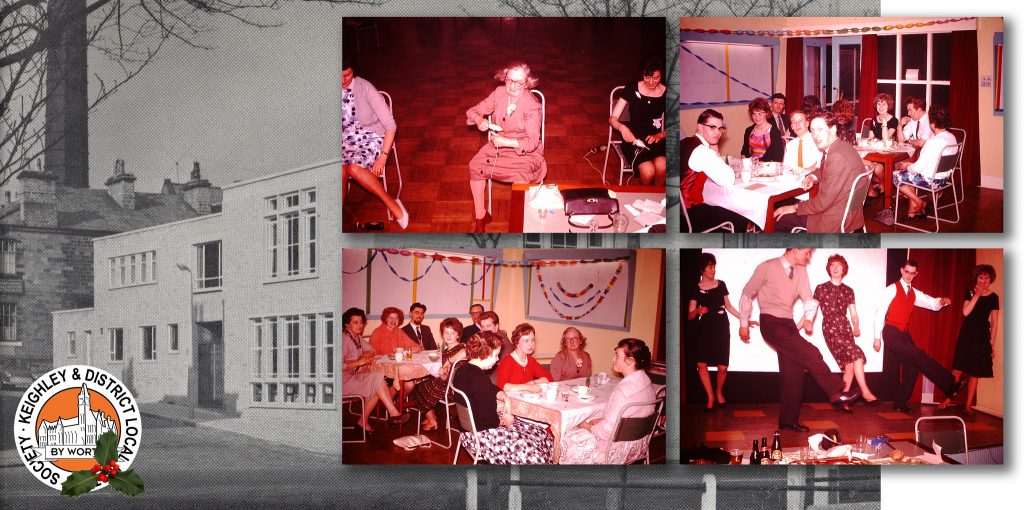 Members of Keighley Library staff enjoy themselves at their work Christmas party in December 1962. The party was held in the lecture hall, part of the new extension to the library. Those attending included Chief Librarian Fred Taylor and Mrs Taylor, Margaret Allsopp, Dorothy Beckwith, Betty Cardwell, Stewart Cardwell, John Cox, Nancy Crick, Michael Davison, Ian Dewhirst, Sally Hudson, Janet Kennedy, Dorothy Major, Doreen Nolan, and Barbara Watson.