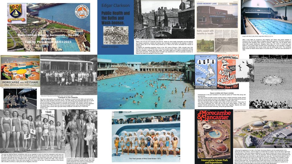 A big thank you to Pam Brook who gave her fascinating and richly illustrated talk on “Morecambe: Beauty Surrounds, Health Abounds” in the library last night. One of our takeaways – white stilettos and a white bathing suit (possibly knitted) were the secret to winning Miss Great Britain!