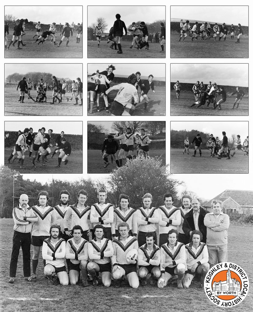 Team photograph of short-lived local rugby league team Oakworth Wanderers taken before a match held on Saturday 31st October 1981. Oakworth Wanderers’ came into being when former Hull and Bramley professional Allan Bancroft, then a coach, and Dave Ingham left Silsden and formed their own club.