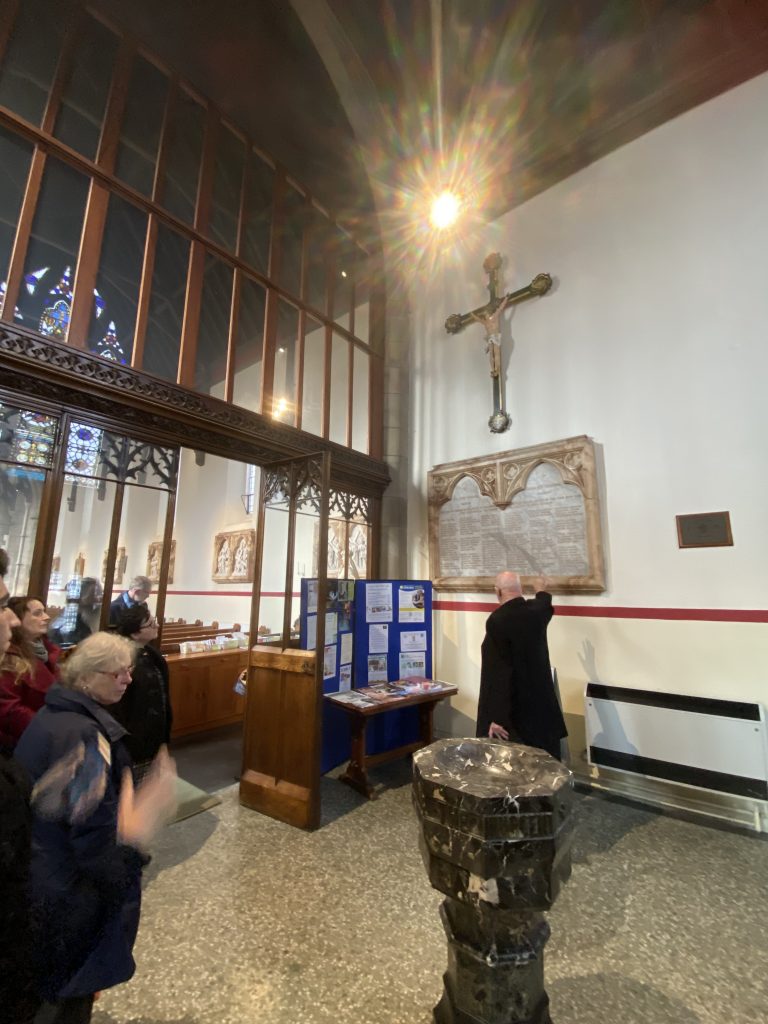 Several members of the the History Society attended the Mass given in St. Anne’s Church this morning, led by Canon Macreadie. We were then given an interesting and insightful history tour of the church by Graham Mitchell. We would like to thank Canon Macreadie and Graham for allowing and facilitating this visit. [Photographs by Tim Neal.]