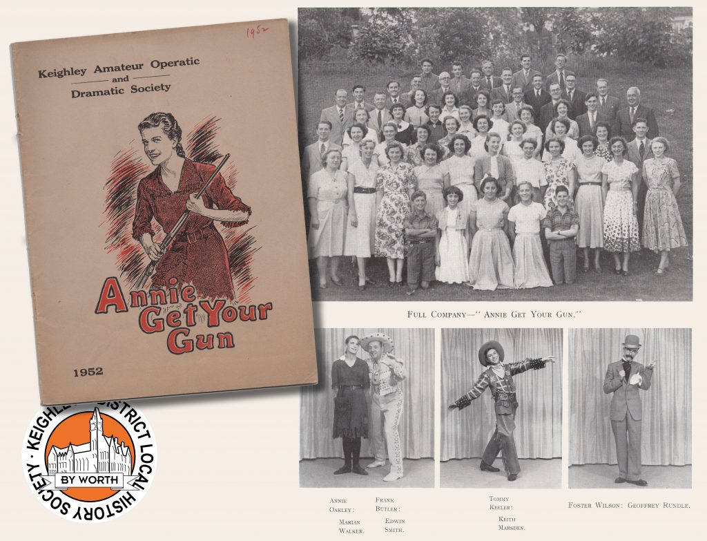 Keighley Amateur Operatic and Dramatic Society’s production of “Annie Get Your Gun” played at the Hippodrome Theatre in Keighley for six nights (and a Saturday matinee) from Monday 13th October 1952. The musical had lyrics and music by Irving Berlin, with book by Herbert and Dorothy Fields. The audience were probably familiar with the musical as the MGM film version had only come out in the UK almost exactly two years earlier. The KAODS production was produced and directed by Douglas T. Bailey, with musical director R. Lewis Scargill.
